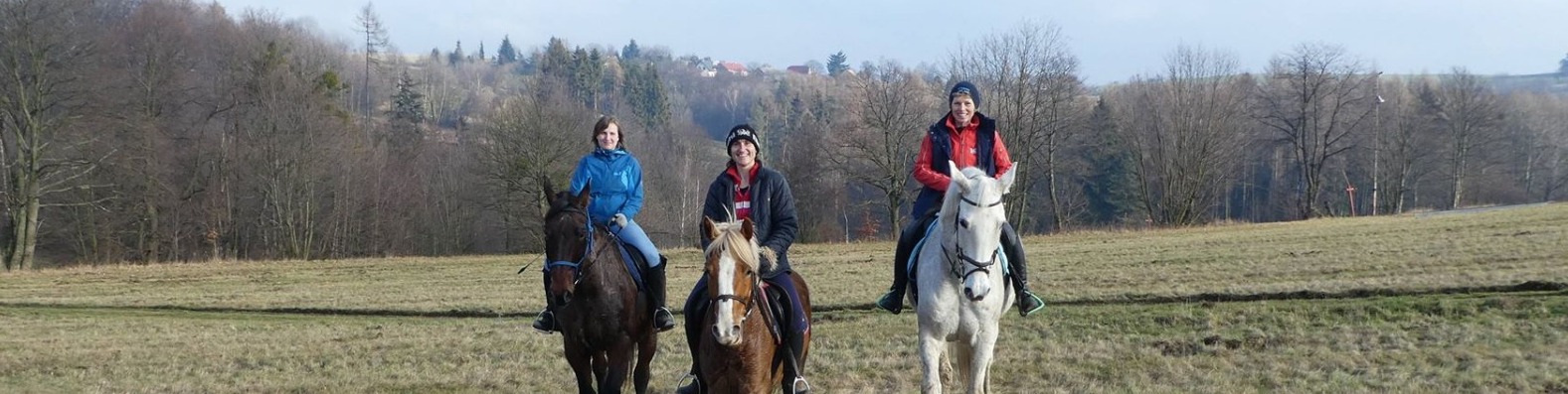 Pro již trochu zkušenější nabízíme vyjížďku na našem zapůjčeném koni v doprovodu trenéra do přírody. Délka, trasa a cena záleží na domluvě a také schopnostech jezdce.